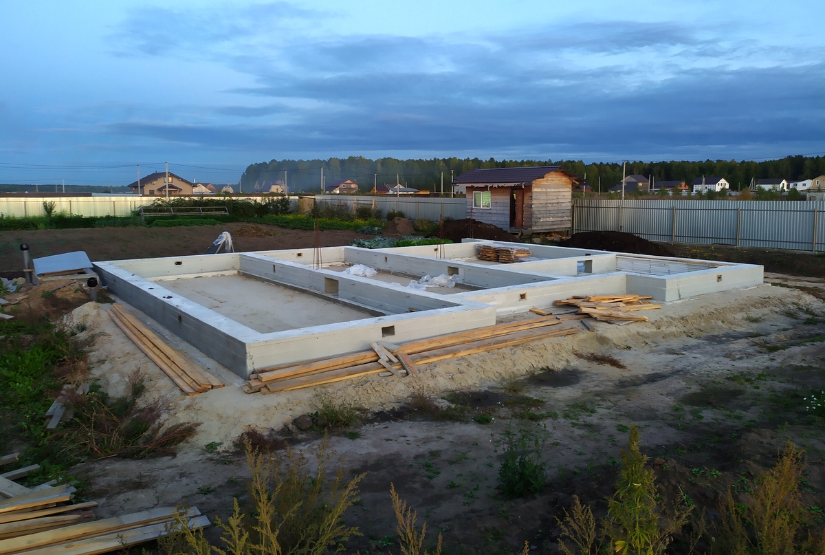 Универсальный и надежный фундамент. Подходит для всех видов построек, можно использовать на слабонесущих грунтах.